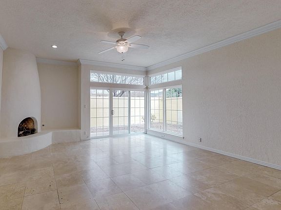 Rare opportunity to own an updated patio home in the coveted Countrywood subdivision.New TPO roof and stucco were both done in 2021. This beautiful patio home features light open floor plan, travertine floors throughout-NO carpet. The updated kitchen features Silestone counters, island, newer appliances (fridge included), patio door, & updraded cabinets w/wine rack & pullouts galore. Both baths have been totally redone! Private courtyard entry, high ceilings in LR with crown molding & gas log kiva. 4 skylights, walk-in closets in both BR's, East facing covered patio, no neighbors to the back + work bench in garage. Primary BR has raised ceiling, patio door to backyard +bath w/dual vanities, separate tub & shower, linen closet + water closet. Refrigerated air and no west facing windows.