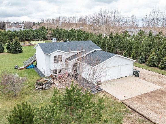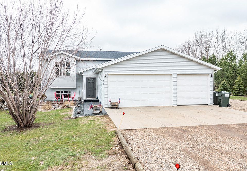 Are you dreaming of a peaceful country lifestyle just minutes away from Bismarck and Lincoln? Look no further than this remarkable split-level home, built in 2003. With 4 bedrooms, 2 bathrooms, and an attached three-stall garage with remote access, this property offers the perfect combination of convenience and tranquility. As you approach the property, you'll be greeted by the privacy and serenity of mature evergreen trees surrounding the home. The front yard features a stunning landscaped fountain with a brick patio, creating an inviting ambiance. The spacious 2.32-acre lot provides ample space for an additional shop or outbuilding, allowing you to explore endless possibilities. Step inside and be impressed by the grand entryway, complete with a built-in coat rack and seat. The entryway conveniently leads to the heated three-stall garage, which also provides access to the backyard and RV parking pad. The upper level of the home boasts an open concept design, seamlessly connecting the living room, dining room, and kitchen area. The kitchen is equipped with stainless steel appliances and a functional island, perfect for both cooking and entertaining. Additionally, the upper floor features a full bathroom and two generously sized bedrooms with plenty of closet space. The lower garden level offers a spacious family room, a 3/4 bathroom, two additional bedrooms, a laundry/mechanical room, and storage space under the stairs. This level provides a private haven for family time and relaxation. Surrounded by magnificent evergreen trees, including towering pines, firs, and blue spruces, this property offers a serene and expansive setting on its 2.32-acre lot. The yard features raised gardens with irrigation, as well as Apple, Peach, and Cherry trees, allowing you to indulge in gardening or simply enjoy the beauty of nature. A shed/playhouse with electricity is conveniently located next to the garden, providing additional storage space or a fun retreat for children. With its numerous features and potential, this property is certain to capture your interest. Don't miss out on the opportunity to explore the endless possibilities it offers. Contact your favorite Realtor today to schedule a viewing and discover the country living you've been longing for. Call your favorite Realtor today so that you can ''See the Possibilities.''