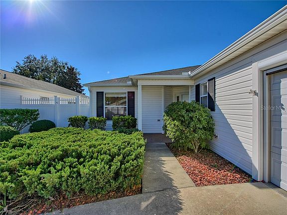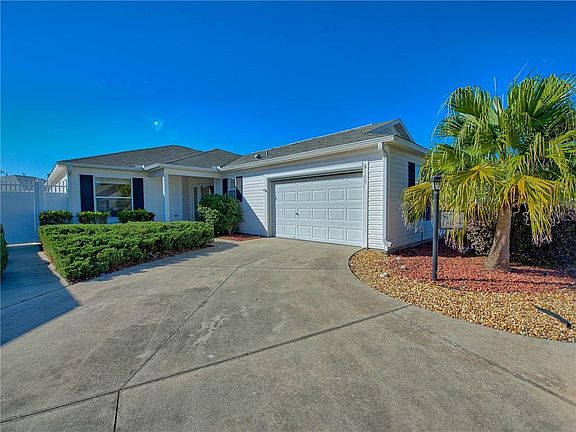 BOND PAID - Dont miss a great opportunity to LIVE YOUR BEST DREAM in The Villages and own this beautiful well-kept Anna Maria Courtyard Villa. This 3 bed/2 bath/1.5 car garage features vaulted ceilings with an open kitchen, white cabinets, contemporary lighting, a chefs sink and faucet, stainless appliances including a Samsung gas range & refrigerator, Bosch dishwasher, GE High Profile Microwave, with neutral tile and LVP flooring throughout. Master Bedroom features an en suite bathroom with dual vanity and walk-in closet. The main living area has sliding glass doors which open to the enclosed lanai which feature ceiling to floor windows and leads out to a large low maintenance patio and entertaining space which host a hot tub, patio table w/6 chairs, outdoor sectional, a remote-controlled awning, and a drip systems for pots in the courtyard. The serenity space is surrounded by mature landscaping and plenty of space for privacy and pets. Just a golf cart ride away from NANCY LOPEZ COUNTRY CLUB, MULBERRY REC CENTER, POOLS, PICKLE BALL COURTS, GOLF COURSE, SHOPPING, VA MEDICAL CENTER, DOCS OFFICES and many other amenities. Square footage is from public records and should be verified.