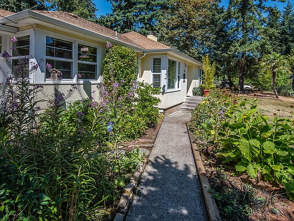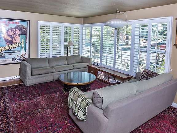 You are going to love this mid-century, funky stunner! All that mid-century charm: hardwood floors, open floor plan, wood burning fireplaces, and big double-pane windows for lots of light. But this home has new things too like designer colors and french doors in the master and guest beds. The feeling of space is incredible, as the living room transitions into the parlour/dining room, and then into the kitschy kitchen. The master bedroom with french doors and small deck features a private powder room. The guest bedroom also has french doors for lots of natural light, and a large closet. Even the hallway in this home has unique touches like rounded corners and built in pantry storage. The bathroom has kept some of that mid-century charm, but hasn't escaped a bit of updating, like subway tiling in the shower. Downstairs, the finished basement provides extra lounge space with a den, large bonus room with wood-burning fireplace, and additional bedroom with egress window. A workshop with standing benches are perfect for those who enjoy DIY projects or arts and crafts. The laundry area has potential for becoming a second kitchen. With side access to the basement, there could be potential for a basement apartment/income property. The backyard features a covered breezeway between the main house and detached, 2-car garage. An additional covered patio provides ample space for outdoor barbecues and picnics, or covered storage. Multiple outbuildings including a chicken coop provide for additional tool storage or potential outdoor lounge. Truly, this is a perfect backyard for a garden oasis.