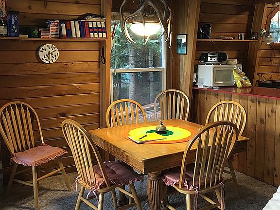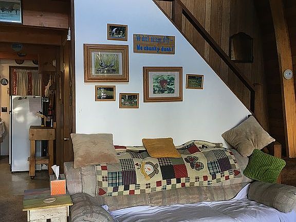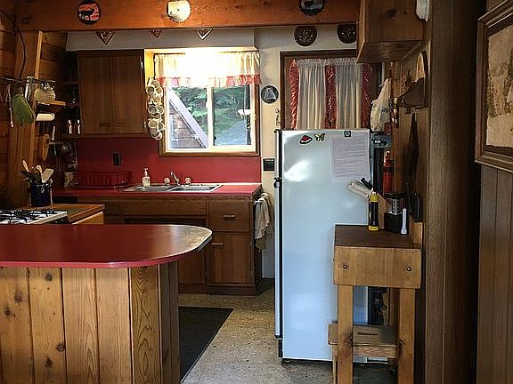 Rustic Cabin on Lake Penland in the scenic Blue Mountains of Oregon. Cabin has kitchen with propane stove top/oven and refrigerator/freezer. Counter tops are Formica. Propane hot water heater on enclosed back porch. Dining and living area has propane stove for heating. Bathroom remodeled with new sink and small shower and cabinets. Loft covers about 3/4 of main floor and fits a queen bed, two double beds, a super single and single bed. There is a small solar panel with three batteries and an inverter for lighting and cabin is also wired for 110 using a generator. Water supply comes from a well which is shared by three other cabins. There is a 2000 gallon shared underground storage tank for the cabins, but this cabin also has a private 500 gallon storage tank. There is a septic tank for waste water. The inner shell of the cabin has beautiful solid 2" tongue and groove cedar planking and is neatly trimmed with a fascia arch.