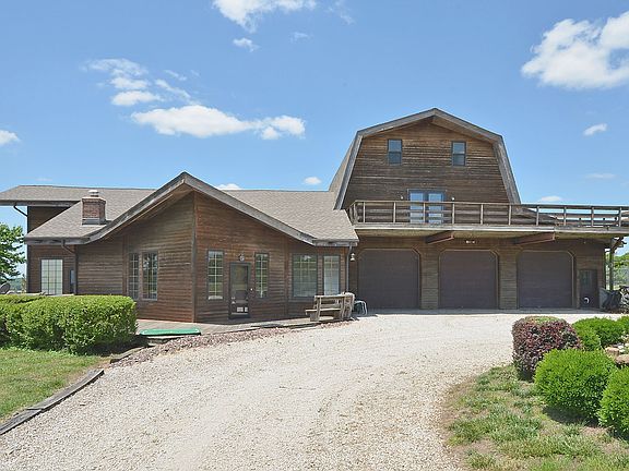 Picturesque setting w\ incredible views for miles & miles from this hilltop location. Energy efficient custom cedar home w/wall of windows. Cathedral ceilings. Exposed beams. U-shaped kitchen w/lots of counter & cabinet space. Brick floors in 2nd living room, Main fl MBR w/en-suite w/jet tub, 36 x 24 barn w second floor for hay, stocked pond, fenced and cross fenced plus riding arena. Large 3 car attached garage +2 more large versatile spaces over garage\2100 sq ft. Additional 17 acres 4-sale, new timberline roof.
