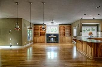 Gorgeous 2 story Weatherby Lake home on 2 lots that backs up to treed greenspace. Large open floor plan w/warm inviting hardwoods on main level. Huge Master Suite 900+ sq ft. Custom built-ins thru-out the home. Huge spacious 2nd level. Finished walkout. Oversized 3rd car garage opens to deep tandem 4th garage space for oversized vehicle or boat.