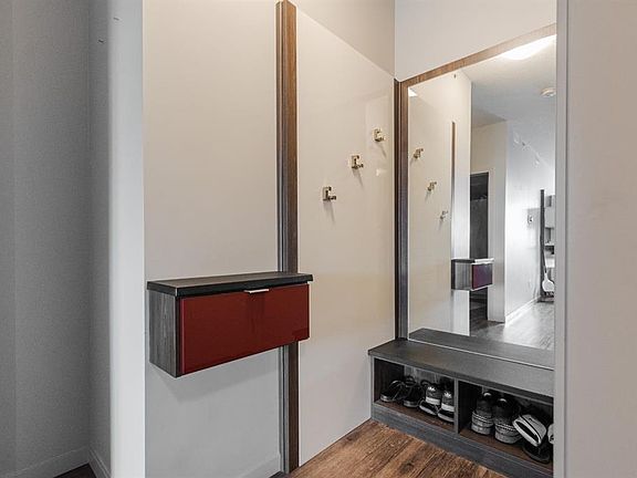 Welcome to 402-8106 Fraser Avenue! This modern, 2 bed 2 bath, TOP FLOOR CORNER UNIT offers the perfect blend of style, function, and low-maintenance living in a highly walkable and convenient downtown location. With thoughtful upgrades throughout, views of the Clearwater River, and the comfort of air conditioning, this home is ideal for anyone seeking a turnkey space with urban appeal. Step outside onto the covered balcony with Duradeck finishing, go for a paved run along the Clearwater River trail, and enjoy the convenience of local shops and visitor parking right at your doorstep! Owners also have the added benefit of private underground parking with side street access. This quiet parkade is both gated and heated, allowing you to park securely in year-round comfort and convenience. Take the elevator straight to the top floor, where this unit is quietly tucked away at the end of the hall with only one neighbouring suite. Custom touches by CALIFORNIA CLOSETS begin the moment you enter with a built-in front entrance unit with bench, mirror, shoe storage and floating drawer creating a functional and stylish entry. The oversized laundry room has also been upgraded with custom cabinetry and storage solutions by California Closets. The bright, open living space features a well-appointed kitchen with stainless steel appliances, a tile backsplash, and a Culligan water filtration system installed under the sink. The entire suite is finished in luxury vinyl plank flooring. The living area is anchored by a sleek pendant light and a custom t.v. entertainment unit professionally installed by California Closets that tie the space together. The primary bedroom offers an open closet design with built-in drawers and slide outs, plus a stylish four-piece ensuite complete with a floating vanity and upgraded storage solutions. The second bedroom has peaceful river views, a generous custom closet, and easy access to the second four-piece bathroom with matching modern finishes. Built in 2016, this building is professionally managed and well maintained. LOW CONDO FEES include water, sewer, garbage collection, and exterior insurance. A rare top-floor corner unit offering with elevated design and a premium location—schedule your private tour today.