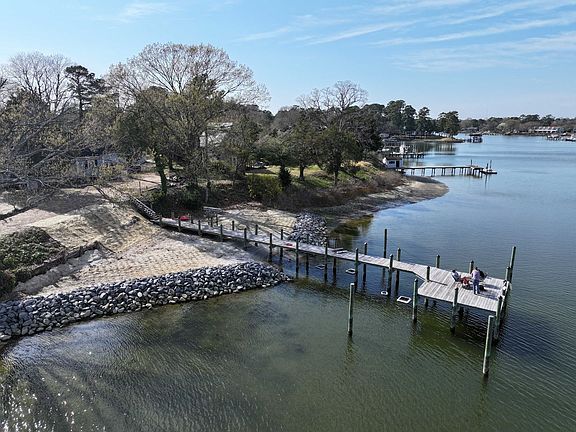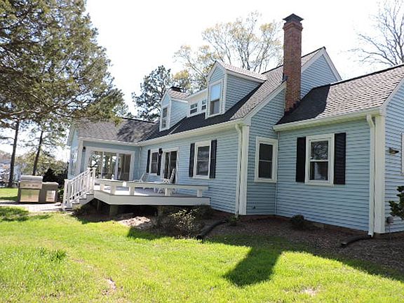 Sarah Creek Waterfront offering pier with boat slip, private setting, all lawn maintenance included. Home offers 3 bedrooms & 3 updated full baths. Kitchen, Dining room, Living room, Family room with spectacular waterfront and breezes leading out to a large back deck. updated kitchen with alot of storage. Wood flooring. 1st floor primary suite with large closets and updated bath. Home has been nicely updated.