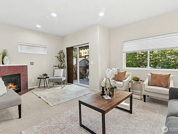 Welcome to this bright corner townhome in the heart of Downtown Redmond. The home offers 2 bedrooms, 2.5 baths, and a huge bonus area at the main level. The light-filled living room centers around a cozy fireplace, while the kitchen features granite counters, stainless steel appliances, and ample cabinetry. Upstairs, both bedrooms have en-suite baths, with the primary suite boasting a custom walk-in closet. Freshly painted, the home also includes a private patio, deck, and attached garage. Located in the sought-after Lake Washington School District, just steps from shops, dining, parks, and transit—and only 3 minutes from the new light rail—this home blends comfort and convenience. Low HOA fee and Pre-Inspected! Ready to move in!