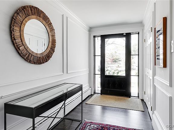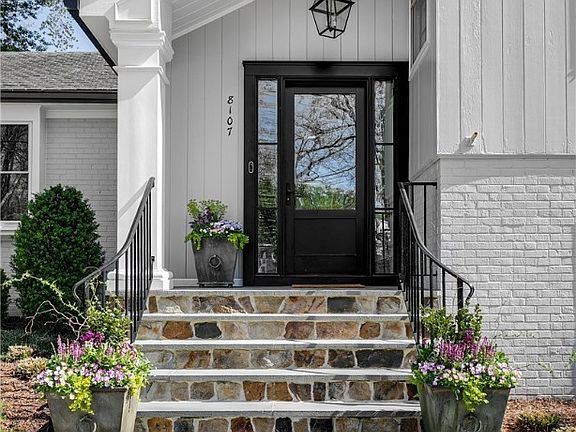 Welcome to 8107 Kingston Road, in the highly sought-after River Road Hills neighborhood. This stunning mid-century modern brick and slate roof tri-level home welcomes you with an extra wide circular stone paver driveway. Designed with both style and functionality in mind, the home boasts spacious rooms and an exceptional floor plan. Pella doors and oversized windows invite abundant natural light, while recently refinished hardwood floors, fresh paint, designer light fixture, and hardwood doors throughout elevate the home’s aesthetic. Step into the bright foyer, where a beautifully cased opening leads to the formal living room, complete with built-ins and a gas fireplace. The dining room open to the kitchen is a showstopper. There is a built in bar area for additional entertaining space. The dining room features a vaulted ceiling, and a stunning Palladian window. French doors from the dining room open to a large stone patio, professionally designed by Cartwright Landscaping. Inside, the spacious kitchen with granite counter-tops and stainless-steel appliances offers ample bar and island seating. A wide staircase leads to the upper level, where you'll find two generously sized bedrooms, a full hall bathroom, and an impressive primary suite. The primary bedroom features updated white flooring, custom built-in closets, and a luxurious en-suite bath with a double vanity, soaking tub, and shower. There is a walk-up attic for storage. The lower level offers a spacious family room, complete with built-in shelving and desk area for homework. This level also includes a fourth bedroom, a full bath, and a laundry room. Glass doors lead to the driveway and a new detached, climate-controlled home office. The fully fenced backyard is a dream come true for both children and gardening enthusiasts, featuring lush, mature plantings and ample space to play. This home is in the Tuckahoe School district and is walkable to the neighborhood pool (membership required) and Tuckahoe Shopping Center. This exceptional home is truly a gem!