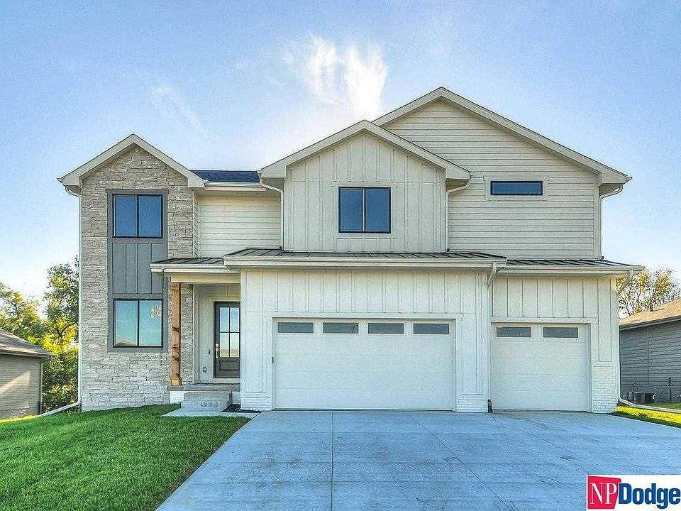 Fantastic, modern 4bed/4bath/4car new construction stunner from Huntington Homes! This 2-story home has all the bells & whistles. Main floor with sunny living room & gorgeous tiled fireplace. Modern kitchen with quartz counters, 3d tiled backsplash, ss appliances, range hood, & large. walk-in pantry. Spacious dining area walks out to covered deck, perfect for relaxing & unwinding. Main floor office with chevron accent wall & closet for office storage. Hardwood floors throughout the main floor. Gorgeous, custom lighting throughout home. 2nd floor owner's bedroom features board & batten accent wall & en suite, modern bathroom with attached, vaulted ceiling, walk-in closet that also walks through to large laundry room. Three additional, spacious bedrooms with attached baths & a 2nd floor bonus room for hanging out or entertaining. Unfinished basement with walk-out to patio. Home backs to trees so an added bonus of no backyard neighbors. Huge 4 car garage with 1 side being 2-car tandem.AMA