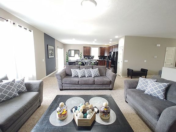 Step into this meticulously maintained walkout ranch home in popular subdivision, Majestic Pointe. Located in Bennington School District, Built in 2016, this 3 bedroom, 3 bath home is ready for you to call home. This home boasts tons of upgrades including the custom built kitchen island, the beautiful quartz countertops in the kitchen and bathrooms. Oversized living space, tons of natural light and mature trees. The basement is partially finished with tons of storage and plenty of space to add 4th bedroom or theater room. The full fenced backyard is private with a large patio, and custom landscaping that is perfect for entertaining.