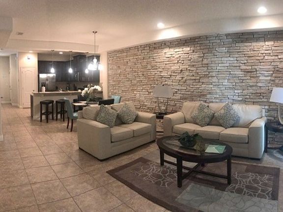 Luxury Features including gourmet kitchen with granite countertops, stainless steel appliances, larger suites with twin vanities with this townhome having two suites one on the ground level and the other on the second floor with two additional bedrooms & bathroom. You can relax at the communities own pool & clubhouse with Fitness facilities or wander across to our neighboring Resort and take a swim in the zero entry resort pool and have dine at the same time in the Resorts on-site restaurant & bar. A great place to relax after enjoying the attractions and lifestyle of Central Florida only two Exits to Disney and a short distance to shops and restaurants. This is a short term rental of 6 months.