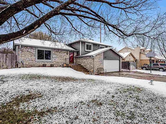 This one won't last! Pride of ownership shines through on the well cared for quad level home. ALL NEW VINYL WINDOWS, new neutral carpet and paint. Upgraded kitchen includes beautiful granite, new back-splash, brand new black and stainless smooth top range, newer dishwasher and fridge. Cozy eating space in kitchen or formal dining room for those larger gatherings. Sliding glass door to composite deck and the lovely back yard with view of neighboring pond. The fenced back yard also has a patio, a storage building, a gas line ran for a grill or fire pit and a sprinkler system on irrigation well. Lower level has a fantastic warm and friendly family room with wood burning fireplace surrounded by bookcases to display all your favorite items. You can also exit to the back yard patio from the family room sliding glass door. The basement level has 2 bedrooms, full bath and laundry. Did I mention the master bedroom ALSO has laundry hook ups? That's right, you decide where to put the washer and dryer or have two sets!! Master and one other bedroom upstairs, both generously sized with great walk in closets. Great west side location, close to public or private schools and of course west Wichita's shopping and dining favorites. 3rd car parking pad to the side of garage. Exterior painted less than a year ago.
