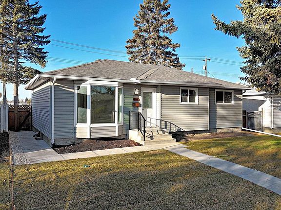 Location, Location - this perfect location backs onto Elmwood Community League, Elmwood elementary & Hillcrest junior hgh public schools, and H. E. Beriault catholic junior high. More schools only a few blocks walk, A Fantastic Family Neighborhood. Many more upgrades with this Beautiful 3+2 bedrooms bungalow that has style, comfort, and functionality! The main floor features modern vinyl plank flooring throughout, a bright & spacious living area, corian counters kitchen with lots of upgraded cabinetry, a gorgeous modern new main floor washroom. The fully finished basement - newer flooring - has versatility w two additional bedrooms, super upgraded 2nd washroom, large family room, extra storage. Enjoy the large double detached garage, private west fenced backyard, new super size stone patio ideal for relaxing or entertaining. Add more features of Newer - siding, shingles, windows, front yard landscape makes A Must View Property. This Quick Possession Renovated Home is Move-In Ready and has Great Value !!!