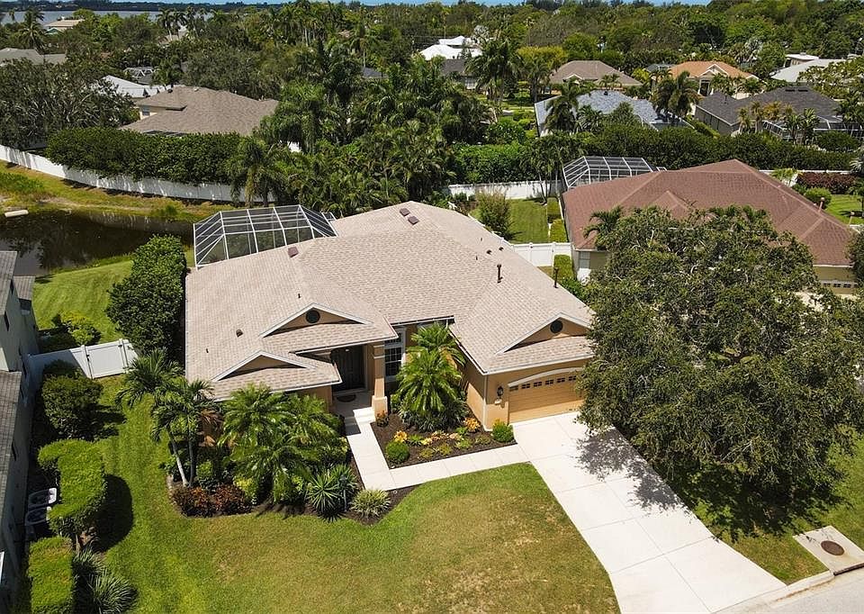 Come Visit...Fall In Love! This extremely beautiful, meticulously maintained, 4bd/3bth waterview dream home, is located in highly desirable Woodlands Park on Palma Sola Bay, in NW Bradenton. Immediately upon entering this wonderful home you will be captivated by the dramatically high ceilings and open airy floor plan while taking in the resort like ambiance of the beautifully appointed, oversized outdoor living area surrounded by peaceful water views making it perfect for entertaining. Every room of this beautifully designed home reflects the highest attention to detail and creates a warm casually elegant atmosphere. Dramatic 9' double doors grace the entrance, while expansive sliding glass doors and windows (and 12' ceilings) highlight the generous living space. Attractive engineered hardwood floors and neutral tile flooring flow tastefully throughout the main living area of this home. Enjoy an impressive chef’s kitchen with its grand center island, featuring beautiful stone counter tops and abundant wood cabinetry with crown molding. Top of the line Bosch appliances, including gas cook top, built in oven, and dishwasher, compliment this kitchen along with other quality stainless steel appliances... you will never want to leave this inspiring oasis. Embrace the peaceful serenity of the pond while marveling at the spectacular inhabiting wildlife bird sanctuary from the spacious living area, perfectly poised around the expansive lanai, allowing for sweeping views from every angle. Retreat to the gorgeous master suite, with dual walk-in closets and beautiful views overlooking the relaxing water and serene patio sitting area. A wonderfully appointed master bath awaits, with dual vanities and beautifully tiled shower with glass enclosure. This thoughtful split floor plan offers welcomed privacy for you and your guests with beautiful spacious rooms, walk-in closet, and inviting guest bath. Conveniently close to Robinson’s Preserve, Palma Sola Botanical Gardens, Desoto Park, Geraldson’s Farmers Market, sandy Gulf beaches, and the boutiques of Anna Maria Island. Enjoy peace of mind in this wonderful Neal built home complete with security system, hurricane shutters, new roof (2022), new two speed Trane A/C (2017), new Rheem gas hot water heater (2015), newly resurfaced Pebble Tech pool (2018), custom resurfaced pool deck (2015), new remote control hurricane lanai screen (2011), new LG top loading washer and dryer (2020). This home is incomparable to other homes you may have seen. Enjoy watching the beautiful virtual tour and call today!