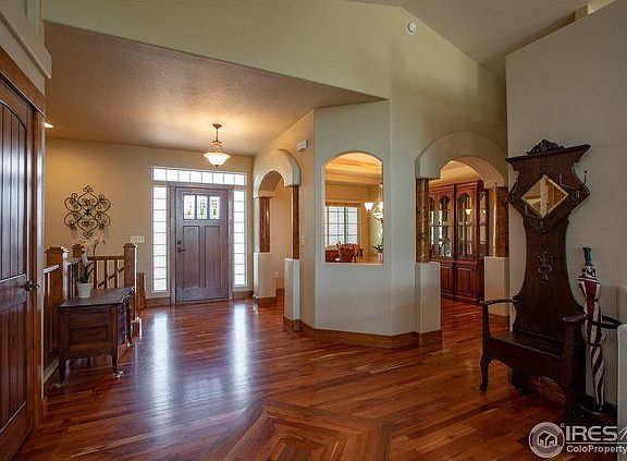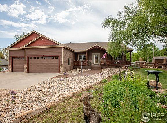 Custom Ranch w/spacious Walkout Bsmt. Country living on 1/2 acre in Arkins Park Sub. 5 BRs, 4 BAs. Main level open Great Rm features double-sided FP. Kitchen is filled w/quality upgrades. Formal dining is framed by log pillared arches. Master & 2 BRs on opposite sides of house. Downstairs large Rec Rm, theater Rm, office & 2 BR. 5th bdrm has no closet Fenced area w/raised garden beds & storage shed. Room for outbuilding or 4H projects.Just off Hwy 34, Rocky Mtn Nat Park is just 45 min away.