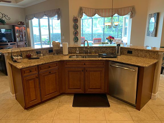 - Interior Features: Ceiling Fans(s), Eating Space In Kitchen, Master Bedroom Downstairs, Split Bedroom, Stone Counters, Walk-In Closet(s), Solid Wood Cabinets, Thermostat, Kitchen/Family Room Combo, Living Room/Dining Room Combo, Window Treatments, Dry Bar, Tray Ceiling(s)