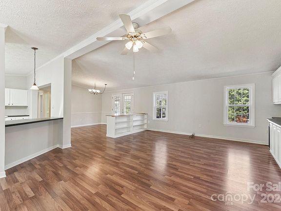 Introducing this beautiful 3-bedroom home in Rowan County complete with rocking chair front porch! Beautifully updated & freshly painted manufactured home sits on an almost acre, corner lot. Spacious kitchen is complete w/ large island, expansive counters, & plenty of countertop space and is open to the open floor plan dining & living area w/ custom cabinetry. The primary bedroom offers a vaulted ceiling, large en-suite bathroom & huge walk-in closet. Step outside to the sunroom & back deck where you can unwind & take-in the scenic surroundings. Included is a detached garage w/ workstation, adorned with insulated and silent doors, plus two large storage sheds w/ electricity—one featuring convenient tractor ramps. Additional upgrades include double insulated windows, 2023 smart water heater, and a new well pump. Don’t miss out on this incredible opportunity for country living in a superb location, close to schools, highways, shopping, & more. Storage building will convey to new owners.
