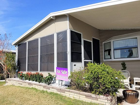JUST REDUCED $37,900 Unfurnished If you are looking for a lakeview open floor plan home...look no further!! The home has lovely curb appeal with a front enclosed lanai, cover patio area, side driveway, carport and storage shed. Walking in through the carport, the entry way has built in storage. The living room, dining room and kitchen are all open with cathedral ceilings and gorgeous hardwood flooring. The kitchen is a cooks dream with its large island, tons of cabinet and counter space, black appliances and double sided sink. The sliding glass doors in the living room lead out the front enclosed lanai. Down the hall is the updated guest bathroom with a tub/shower combo. The guest bedroom is large with a nice sized closet. The bedroom easily accommodates a queen-sized bed, night stands and a dresser with plenty of room to still move around. The huge master bedroom has a beautiful lakeview. Imagine waking up every morning to this beautiful view and sights of wildlife. The bedroom has a large walk-in closet and a nice dressing area. The ensuite bathroom has an updated double vanity and a step-in shower. New tiedowns 2019. New AC and Duct work. The roof has also been redone and is shingled. This home has been well-maintained and is in a great location. Call today to make this your Florida Dream Home! ACT FAST & CALL TODAY!! Don't forget to ask about the FINANCING available on this home. Colony Cove is an age qualified (55+) five-star resort community of manufactured / mobile homes. The "Cove" boasts 5 clubhouses, 5 heated pools, a riverfront pavilion and private fishing pier, a private marina, a fenced dog park (very pet friendly), tennis, shuffleboard, new pickleball courts, 2 new fitness rooms, 24 hour patrol, clubs for every interest, and much more. There are daily planned activities throughout the park. Bottom line, if you get bored here, it's your own fault!! The lot rent in Colony Cove is based on the homes' location. While the monthly rent may not be the lowest around, it's by far the best value for the money. Not only does the monthly rent cover all of the amenities of the community listed above, it also covers almost all other monthly expenses such as; water, sewer, trash pickup, all property taxes, lawn maintenance. . .pretty much every monthly expense except electricity and internet. The current lot rent on this home is estimated at $1080.20 per month. All listing information given to us is considered appropriate and reliable but always recommend Home Inspections by independent companies who have a background and thorough understanding of manufactured homes. We cannot guarantee the accuracy of information given to us or the condition of the home. Lot rents are determined by the community office not our company.