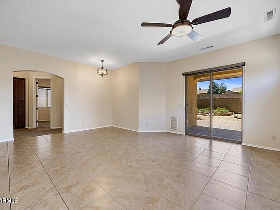 Step into this beautifully upgraded home with a stunning open kitchen featuring granite countertops, stainless steel appliances (including a gas stove), staggered cabinetry, and a spacious pantry. Enjoy the convenience of a stainless under-mount sink with a pullout sprayer, stylish tile flooring, and a dining nook and formal dining room. The sunlit great room has tile flooring, accent windows, tall ceilings, a ceiling fan, and easy access to rear covered patio (w/ remote-controlled awning) through the sliding door. The primary suite offers a luxurious tiled shower with clear glass, an executive-height granite vanity with dual sinks, a private toilet room, and large walk-in closets. You'll love the laundry room with washer & dryer, direct garage access, and cabinetry w/ folding counter. The deep two-car garage has a workshop area, a 40-gallon water heater, and a hot water recirculation pump. Additional highlights include 2x6 construction, Energy Star appliances (all are included!), HVAC, dual-pane low-E windows, upgraded insulation, recessed lighting, upgraded light fixtures, a BBQ gas stub, ceiling fans in all 3 bdrms, tall block wall fencing, and a professionally landscaped front and backyard with a drip watering system.