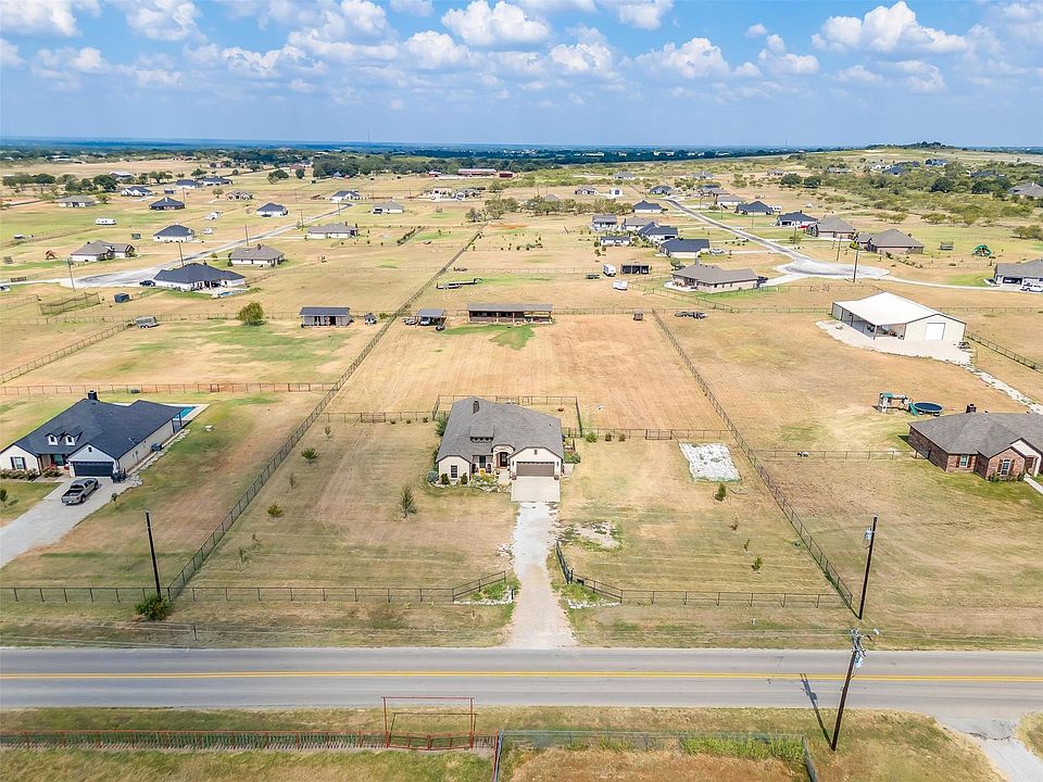 Welcome to your own two-acre HORSE property! NO HOA! NO WATER BILL! Drive up to your private gated entrance and you'll find a fully fenced and cross fenced acreage! FFA ANIMAL FRIENDLY! Already has a 3-stall horse barn with a tack room, extended covered awning with cedar posts and an oversized carport for additional storage. What you'll love about this one is that the home has great curb appeal, a sought-after floorplan with interior must-have finish outs. A trendy barn door separates the home office with closet from the entryway before you walk into the open concept living, kitchen and dining. Wood burning fireplace with built-in shelving makes for a cozy living! Gorgeous white kitchen with stylish grey subway backsplash, gas stove, coffee bar and WALK-IN OVERSIZED PANTRY! Owners suite is packed with everything you need from separate vanities, clawfoot tub and walk-in closet. Dual vanities in the secondary bathroom and SO MUCH MORE!! Located minutes from the Brock ISD schools!