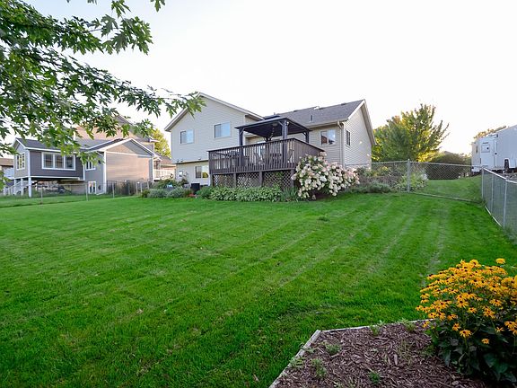 Welcome to this beautifully maintained 3-bedroom, 2-bath three-level split in the heart of Otsego! Step into a welcoming tile entry with closet and an open-concept main level where vaulted ceilings and hardwood floors (2015) create a warm, inviting atmosphere. The kitchen has been refreshed with painted cabinets, updated hardware, a new faucet, and updated appliances including a 2024 Samsung fridge, Whirlpool® dishwasher, and LG stove. The dining area walks out to a deck with a pergola-style awning overlooking a fenced backyard filled with perennial gardens – perfect for relaxing or entertaining!