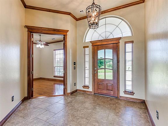 ***$25,000 PRICE REDUCTION!*** This wonderful home in Edmond Schools sits on 1.5 acres in the beautiful Cardinal Ridge addition and is an absolute showstopper! On the drive to this house, you'll fall in love with the gorgeous neighborhood with multiple ponds and the perfectly maintained lawn that offers plenty of space between you and your neighbors. One of the neighborhood ponds can be seen clearly right from the front door! Upon entering, you'll immediately notice how much natural light is pouring in from the tall windows across the back of the living room and dining room. The kitchen offers under cabinet lighting, an extra large pantry, as well as, a gas stove and a large island with extra storage. The study has a closet for extra storage, hardwood flooring and double doors. The separate laundry room is huge with additional storage, a sink and even room for an extra fridge or freezer. The secondary bedrooms are separate from the primary bedroom with a jack and jill bathroom between them and they both have huge walk in closets!! The primary bedroom is also huge with more large windows to see the beautiful view. The covered back patio is perfect for an evening gathering around the firepit! The roof was replaced with Class IV Impact Resistant Shingles in 2022 and could help you save money on your insurance! This home has been meticulously maintained by the original owner and it is ready for you to move right in and make it your own!