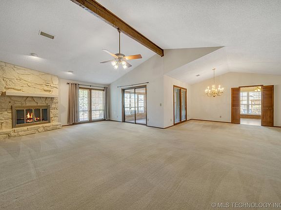 Nice 3 Bedroom 2 bath South Tulsa home in Union Schools and walking distance to Darnaby Elementary! Large vaulted and beamed ceiling w/ fireplace, access to sunroom and open to the formal dining. The kitchen is a nice size with pantry and plenty of cabinets. Spacious Master that can accommodate lrg furniture. Good size backyard with great trees, full sprinkler system and room for a pool. This home is 2175 sqft (ch), which does not include the sunroom. Great established neighborhood that is close to everything! This home has been well cared for and will go quick at this price!!