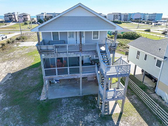 MOTIVATED SELLER! $95,914 estimated in advertised income.....buy now and start collecting rental income. Welcome to South Nags Head! This stunning 4-bedroom (Septic for 5) 3 Full Bath semi-oceanfront home boasts breathtaking ocean views with a prime location just steps away from the sand and surf and two fishing fishing piers. Home has a front room with a closet that could easily be used as a bedroom with a reconfiguration of the stairs. Or use as flex space with additional sleeping options. Master is oversized and the room off the master could have doors added to it to make a private bunk room off the master for small children. As you step inside, the living room features cozy seating, a large flat-screen TV gas fireplace. The adjacent dining area offers ample seating for enjoying family meals together. The fully-equipped kitchen is spacious with a large eat in area. Ready for you to whip up your favorite dishes. Upstairs, you'll find the spacious master bedroom with a king-sized bed and an en-suite bathroom. The other three bedrooms are also generously sized and offer comfortable sleeping arrangements for your family or guests. Outside, you can relax on the deck and soak up the sun while listening to the soothing sound of the waves. With its prime location with easy assess to two fishing piers, this semi-oceanfront home is the perfect place to create unforgettable memories with your loved ones. Septic is for 5 bedrooms Sleeps 10.