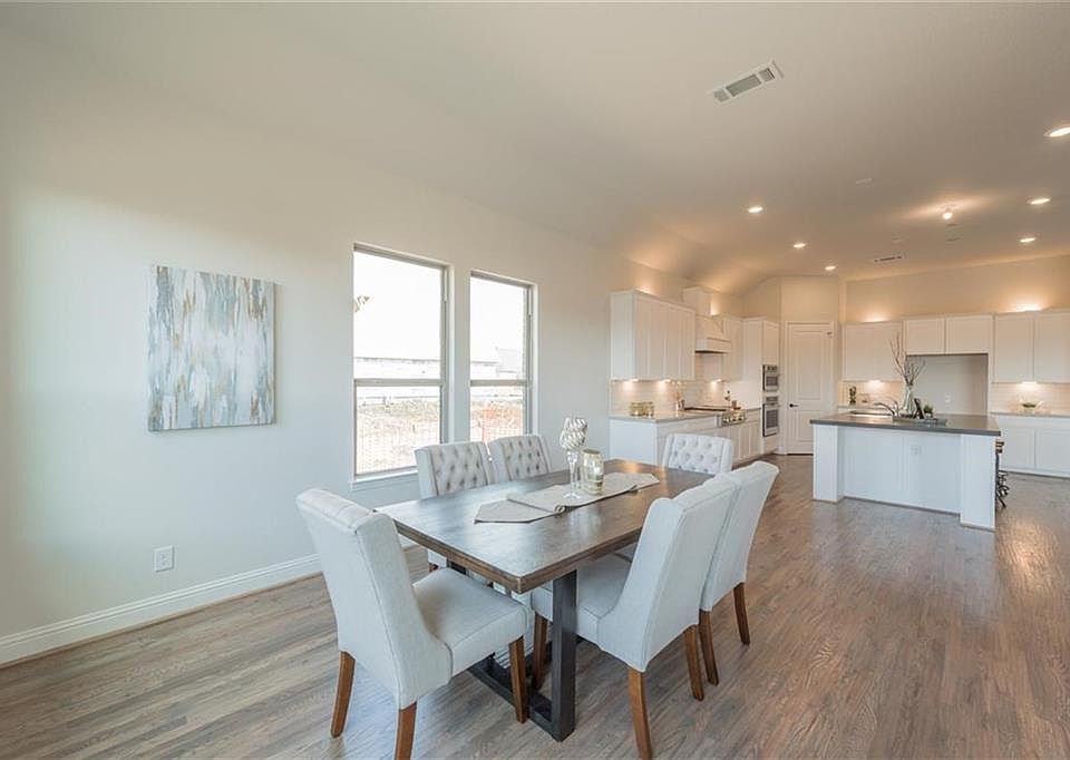 MLS# 13760081 - Built by Taylor Morrison - CONST. COMPLETED Nov 21 ~ This 1-story home features an open living dining room area in the center of the home and a gourmet kitchen. An extended breakfast nook adds additional space. The study and bedrooms surround this space, including a deluxe master suite with a spacious walk-in closet his and hers vanity in the master bathroom. The home boasts nail down hardwood floors, wet bar, a glass wall, textured carpeting and Monogram appliances. This home is located in North Dallas in a beautiful lakeside community, featuring a waterfront clubhouse with a lifestyle director, swimming pool, fitness rooms, nature paths and two award-winning golf courses nearby.