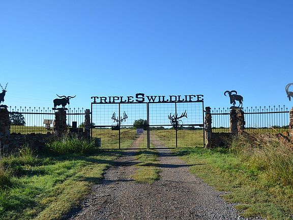 This stunning wildlife ranch features a huge rustic lodge, stocked lakes, barns and offers hunting adventures of exotics, ram species, deer, elk, and bison.