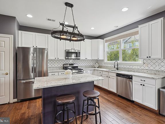 Rarely available 3 bedroom/3.5 bath townhome in desirable Blooms Mill Community with over 2,100 square feet of living space on 3 levels. Only 4 minutes/1.3 miles to VRE station with train service to Washington, DC. <p> Exceptionally well-maintained property offers light-filled main living area with hardwood floors throughout. Beautiful and large gourmet kitchen with ample supply of white wood cabinets and tile backsplash is adjacent to oversized breakfast/dining area. Stainless steel appliances, pantry, numerous upgraded, designer lighting fixtures, granite-topped counters and kitchen island. Spacious deck with sun shade sail canopy and 3 side shade panels - perfect for cook outs and entertaining friends. Fully fenced back yard. Owner’s Suite features vaulted ceiling, walk in closet, ensuite bath with dual sink vanity, stand up shower and soaking tub. Two additional spacious bedrooms on 2nd level along with a conveniently located laundry/full size washer/dryer. Spacious lower level is a "walk-out" with access to fenced backyard. Lower level features a full bath and 2 closets. This flexible space can be used as a guest room, in-home office, in-law suite, kids play area, or family room. Two car garage with long driveway provides off-street parking for 2 cars. Across from entrance to property are numerous visitor parking spots – something you do not always find in a townhome community!! <p> Low HOA fee includes community club house and outdoor pool, basketball courts, tot lots, and front yard lawn maintenance. Recent upgrades include new garage door, smart garage door opener, and large deck with sliders from the dining area. Many rooms are freshly painted for the convenience of new owner. Minutes to Rt. 28, Manassas Park train station/VRE, hiking and nature trails in Blooms Park, Manassas Regional Airport and all the restaurants and shopping Old Town Manassas has to offer. A great new place to call “home”. 8109 Levity Place checks all the boxes. <p> Don't wait to see. Property is located about 1 mile/4 minutes to new VILLAGE AT MANASSAS PARK. A new city-center commercial venue currently under development . This commercial venue features the new 50,000 SF City Hall complex. Planned for a 2024 opening , 40,000 SF movie theater, and supplementary VRE Garage. Finished site will have stunning outdoor public plazas, activated entertainment areas, restaurants, and lots of parking spaces. Brochure available.