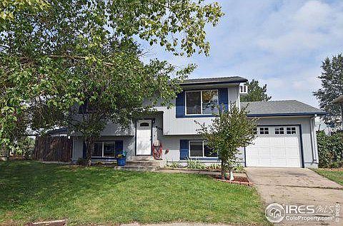 Move-in ready family home or investment property with 4 bedrooms, flex room,new flooring, remodeled kitchen, tiled bathrooms, and huge master with walk-in closet. Large fenced backyard with fire-pit,lean-to-storage shed, garden shed, and sprinkler system for the back yard. House is at the end of the cul-de-sac with views of the mountains from the trex deck. Low HOA. The neighborhood features a pool, clubhouse. and playground. Quick access to I-25, Loveland, Windsor, and Greeley. Must see! RV storage available for minimal fee to the HOA. MUST SEE!