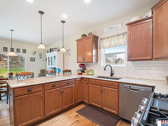 You will absolutely love this GORGEOUS PRE-INSPECTED home in Pine Creek with over 1800 square feet on the main floor! Sitting on a .26 acre lot, this place boasts a fully fenced backyard and a covered patio to enjoy the mornings and evenings on! Open, eat-in kitchen has gorgeous cabinets, stainless steel appliances, gas stove, quartz counters and tile backsplash with tons of counter space & loads of cabinets for storage. The centrally located living room has vaulted ceilings and a gas fireplace. Primary bedroom features a walk-in closet, double sinks, tile floor, tub and tiled shower. Other bedrooms are generously sized, as well. You will love relaxing in the HUGE finished basement. It has a large rec area, 4th bedroom, 3rd bath and a large storage room. Don't miss this one! All Measurements are Approximate.
