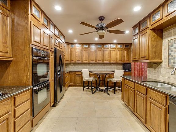Flexible floor plan and absolutely adorable! As you walk through the front door, you're greeted by a true entry way and on to the living room with brick fireplace and âwood-lookâ tile. Formal dining is open to living so it could be used as study or play area. Neutral palette throughout. Kitchen is updated with granite, tons of cabinet storage and ample workspace. Sunroom/enclosed patio off of the kitchen. Master bedroom has a ceiling fan and a large walk in closet. Master bath has been partially updated and has a new toilet. Two secondary bedrooms down stairs share the remodeled guest bathroom. Inside utility area with cabinet storage. Upstairs you will find the fourth bedroom with windows overlooking the wooded greenbelt. Plus the second living or 5th bedroom and a hidden closet/play area behind the book case. The backyard backs up to a creek and HOA greenbelt allowing you to walk through the trees and over to the neighborhood pool, clubhouse, park and tennis courts. Move in ready!