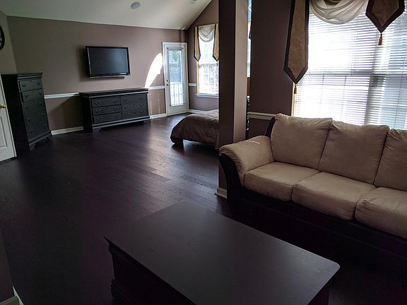 Large single family home with over 5,600 square feet plus finished basement. Family friendly community with a swimming pool, tennis courts, playgrounds, and walking/hiking trails. Owner's suite featuring a sitting area, gorgeous master bath with separate his & her vanities, luxurious shower, jacuzzi tub, balcony, and large walk-in closets. Upgraded gourmet kitchen with new stainless steel appliances, 4 bedrooms, 2 full and 2 half bathrooms, huge deck, family room, living room, sun room, office/den, dining room, morning room, exercise/gym room, gas fireplace, two car garage, plenty of storage, upstairs laundry room. Huge finished basement with wet bar and theater area. Renter is responsible for all utilities and lawncare.