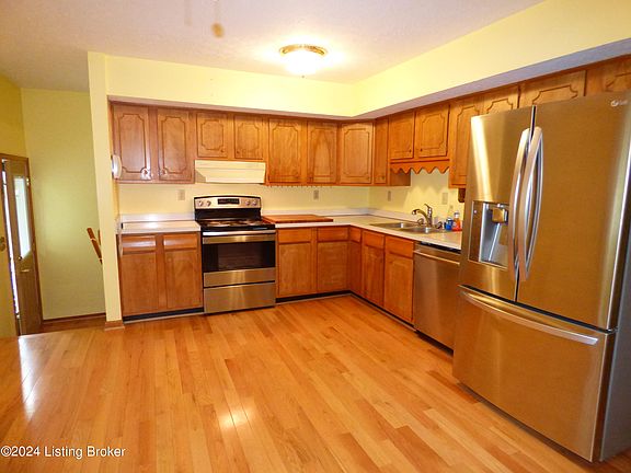 Convenient location in a well-established neighborhood between the Gene Snyder & Outer Loop. An all-brick ranch with finished basement that totals Approx. 2300 SqFt, with a 2.5 car garage! A fenced backyard with a large patio and beautiful trees providing shade. The main floor has all hardwood floors with tile in full bath. Enjoy all the windows that provide natural light throughout. The living room opens from the large covered front porch. The eat-in kitchen's Refrigerator and Range can Remain. Three good-sized bedrooms finish out the first floor. The basement great room is huge with so many possibilities (maybe 4th bedroom) or kept as one great open space with a gas fireplace. A Full Bath, Laundry room and Storage completes this basement. Check out the Virtual tour, then come and view!! The Dishwasher does not currently work. See Seller Disclosure.