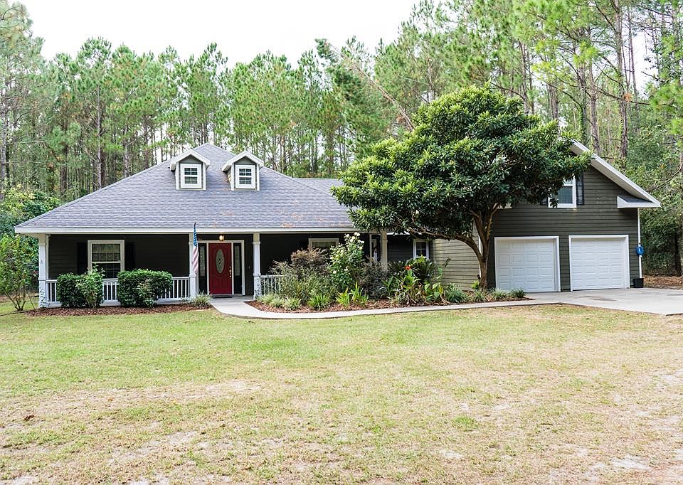 Tucked in the pines off a paved country road sits a beautiful 3 bedroom 2.5 bath home with additional finished bonus room above garage. Vaulted ceilings with skylights offer natural light in the open floor plan living area, a gas fireplace sits as a focal point, and dining and kitchen are open to living for entertaining. Large master bedroom & bathroom complete with walk in shower, jetted tub and a double walk in closets. Off the living room are french doors open to a separate office or Florida room while stairs down the hall lead to a bonus space above the garage perfect for a playroom or media room! Home features new painting throughout, all new flooring in the home featuring vinyl plank floors in main living area, all bedrooms plus bonus room have new carpet, new dishwasher, new washer/dryer set & new microwave. Less than 5 miles from Hart Springs, Otter Springs & public boat ramp. This beautiful home is waiting for it's family! Must see to appreciate all the details!