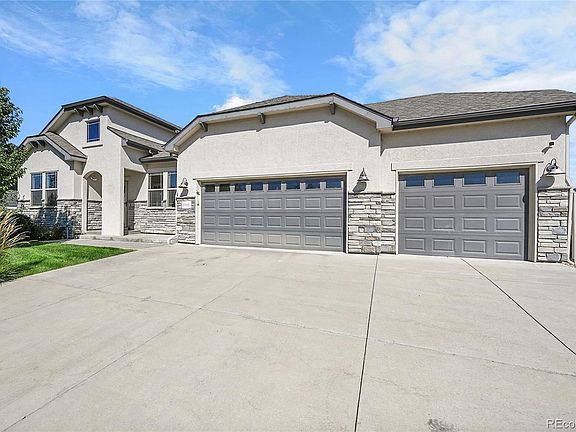 Welcome to this beautifully maintained, move-in ready custom home in the highly sought-after Poudre River Ranch community. Pride of ownership shines throughout this 4-bedroom, 3-bathroom home with over 3,100 sq. ft. of thoughtfully designed living space. Step inside to an open floor plan featuring lustrous hardwood floor, a cozy gas fireplace, and a bright living room that flows seamlessly into the chef’s kitchen. Complete with a center island, granite countertops, gas range with griddle, and two spacious pantries, this kitchen is perfect for both everyday living and entertaining. Just off the kitchen, enjoy your morning coffee or evening glass of wine on the covered balcony year-round. The main-level primary suite is a private retreat with a tray ceiling, spa-like five-piece bath with oversized soaking tub, and a generous walk-in closet. Two additional bedrooms, a full bath, and a versatile laundry room with built-in storage complete the main floor. The fully finished walkout basement is made for entertaining—offering large windows for natural light, a bar, surround-sound wiring, and plush carpeting. It also features a guest bedroom, ¾ bath, and an oversized utility room perfect for seasonal storage. Car enthusiasts and hobbyists will love the oversized 3-car garage, complete with custom cabinetry and plenty of space for vehicles, toys, and tools. Peace-of-mind upgrades include: a passive radon system, smart thermostat, Vivint security system, a gas line connection on the patio for your grill and a full fire suppression system in the basement. Residents of Poudre River Ranch enjoy low maintenance living with HOA-maintained lawn care, and a serene community atmosphere with easy access to nature with walking trails right at the edge of the community. Built in 2014, this home blends custom design with everyday comfort—ideal for gathering, entertaining, and making lasting memories. A pre-listing inspection has been done and is available upon request.