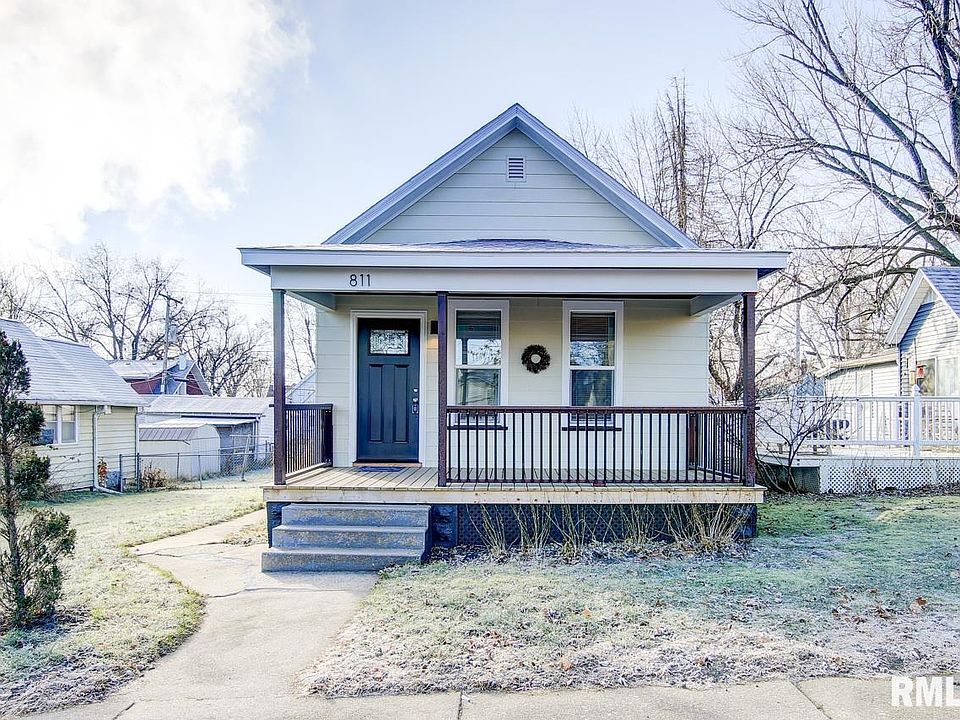 Welcome to this charming bungalow. This meticulously remodeled 2 bedroom gem has been redone top to bottom, inside and out. This home is located on an extra wide lot. Step into the bright living room with stone chimney and 3 east windows that flood the space with natural light. All windows include window coverings. The front bedroom offers a cozy retreat, while the back bedroom provides adequate space. The kitchen is a masterpiece of design, featuring tasteful modern updates and a breakfast nook with a charming naughty pine ceiling. The beautiful bathroom with spacious walk-in shower has porcelain tile, high end glass doors and exquisite finishes. The main level laundry room adds convenience. Every detail, from the kitchen cabinets to the bathroom shower to the unique light fixtures compliments the high end design style. The home is not just aesthetically pleasing, but also boasts practical upgrades including all new plumbing, electrical, new service to the house and garage and most windows. Convenient access to the basement through both an inside and exterior door. The TWO car garage has been rebuilt to provide ample parking and storage. The partially fenced backyard ensures privacy and room for outdoor entertaining. A new large stylish awning over the backdoor provides shade in the afternoon and coverage during rain. This home has the perfect blend of style and functionality. Don't miss the chance to call it yours. No need to be renting.
