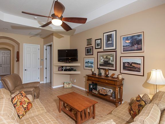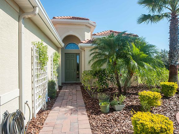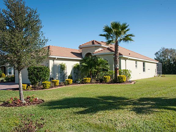 This home has it all! Perfectly situated on 3/4 of an acre that backs to a greenbelt, giving you a feeling of seclusion in a beautiful neighborhood setting with No CDD fees and HOA fees are less than $50 per month!! Parking is never a problem with the oversized paver driveway. Beautiful upgraded landscaping with curbing, irrigation system for the entire property, barrel tile roof and gutters. The 20' x 33', 4 car tandem garage with built in finished shelving, epoxy floors and a workshop, complete with workbench, pegboard wall and overhead lighting. There is additional storage with shelving in the attic space above the garage. Inside you'll find an art nook entrance way that leads into an open floor plan. The living room, kitchen and dining room have 10' ceilings and a tray ceiling in the living room. The living room is also wired for surround sound and HDMI cable ready outlets. Granite kitchen countertops with tile backsplash, stainless steel appliances including an ultra quiet Bosch dishwasher. The dining room has tile surround on the walls that complements the backsplash in the kitchen. Walk through your triple sliding glass door into a large screened pool area. Want to watch TV or listen to music while swimming? You can do that thanks to the HDMI cable ready outlets and outdoor speakers in the screened in pool area. The large master bedroom has sliding glasdoors that lead to the pool area as well. Ceiling fans throughout the house including the garage. This home is conveniently located 20 min from Sarasota's UTC Mall, 15 min from downtown Lakewood Ranch and 40 minutes to Tampa. With the completion of the Fort Hammer Bridge you'll be able to get to the Ellington Outlets in less than 15 min. Elementary, Middle and High Schools are ALL A Rated schools. Country Meadows is a beautiful and active neighborhood with oversized lots, ponds and a large community park complete with basketball court, playground equipment and a covered picnic area. Willing to work with agents.