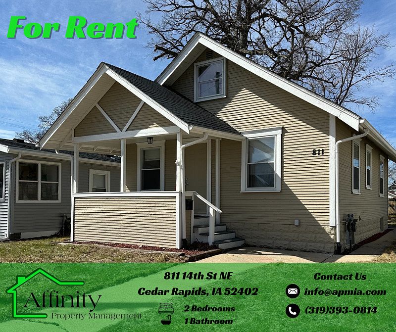 RENOVATED SINGLE FAMILY 2 Bedroom 1 Bath on main floor w/bonus room in upper level. Basement is clean, open, and bright with Washer & Dryer provided. Kitchen is equipped with new appliances including Refrigerator, Microwave, Range Oven, and Pantry. Bathroom has all new vanity, tub, toilet, fixtures and shower doors. There are Ceiling Fans in all Bedroom & Living Rooms plus a Window A/C on main floor and Upper level. Where are you going to park? There is parking out front off 14th or a One Stall Detached Garage in the back alley. Like to sit outside? You will enjoy the nice back yard as well as a Front Porch to watch the sun rise. A mower & weed trimmer are provided. Sorry, This Rental Does Not Allow Pets. Get your application in now! Landlord Responsibilities - Utilities and Services: - NONE Tenant Responsibilities - Utilities and Services: + Electricity: Alliant Energy - Monthly Average: $135** + Gas: MidAmerican - Monthly Average: $65** + Water/Sewage/Recycling/Garbage: - City of Cedar Rapids - Monthly Average: $80** **Monthly Average varies with individual use and may not accurately reflect average costs. Pet Details: - No Pets Allowed Affinity Property Management is proud to offer deposit-free living to qualified renters through Obligo! We understand that moving costs can add up, so we want to extend financial flexibility to our residents. When you move in with us, you can skip paying a security deposit and keep the cash for activities you care about. Additional Disclaimers: *Application Fee(s): $40 Per Adult *Application Process consists of credit and criminal background check, income requirements, and rental reference checks. *Affinity Property Management reserves the right to deny applicants with a previous eviction, unpaid balances, and criminal history. *Advertisement photographs and/or videos may be of a similar property.