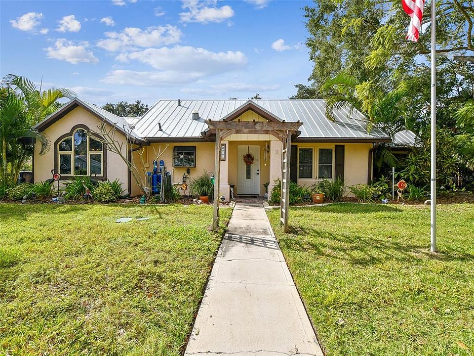 Country living meets downtown convenience! That's the feeling one gets when you step on the property of this charming ranch style home located just off the historic district in Palmetto, just a short ride to the Manatee River and Regatta Marina. With .57 acres of mature landscaped and fully irrigated lawn, this 3 bedroom, 2 bath estate shows the pride of ownership. Updates include a metal roof that was installed in 2017, an HVAC unit with all replaced ductwork, newer stainless steel Whirlpool appliances with a 1YR old Bosch dishwasher. The kitchen drawers were redesigned to feature pullouts and the home is installed with a whole house water filter and softener system. The panel box was replaced just a year ago with a surge protector. Guest bathroom was completely remodeled with a walk-in decorated tiled shower. Large sliding glass doors open up to the screen in lanai with a 20,000 gallon, 6FT + pool that was recently resurfaced, solar heated, and converted to saltwater, with a self cleaning system. Well appointed guest bedrooms and a built in Murphy Bed that is converted to shelving when up. Office/Dining as well with built in shelving! The Master Bedroom features a private slider to the lanai with a large master bathroom with barn door entry, jacuzzi tub, walk in shower, exterior side patio entry, large walk-in closet with built-in safe, and also a hidden built-in jewelry box. The Master also has a secondary split A/C unit to cool the room at night. Exterior features a 3 car covered carport, covered BBQ Pit (pit included), a detached workshop with updated power, metal shed for storage, landscape lighting, newer fencing, with an attached utility room with A/C, with washer/dryer, and freezer that are included. Love chickens? Large chicken conveyed for those sunny side up eggs in the morning! Privacy, amenities, location, and convenience. Don't let this one get away! Call your Realtor today.
