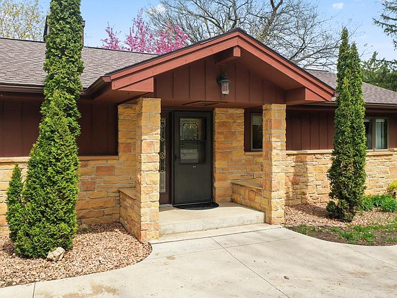 A spectacular circle drive introduces you to this charming 4-BR 2-bath Mid-Century Modern Rambler with walkout on 0.53 acre wooded panoramic NW lot. This character fill home features newer decor throughout, including a lovely updated kitchen with an island that opens to the dining room. The main floor boasts a pretty 2-sided limestone fireplace and vaulted ceilings, creating a warm and inviting atmosphere. The walkout lower level offers a family room with another fireplace, primary bedroom and recently remodeled bathroom. Outside, you’ll find a patio, deck, and a detached double garage. This move-in-ready property is perfect for those seeking comfort and tranquility.