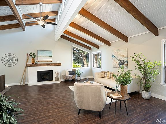 Move-in ready! Newly remodeled, this light-filled home seamlessly blends stylish updates with natural Northwest beauty. Enjoy Mt. Baker views from large picture windows set beneath vaulted ceilings w/ exposed cedar beams. Interior upgrades include full kitchen and bathroom makeovers, LVP flooring, lighting, and more. Fully-fenced yard offers large deck, low-maintenance landscapes and dog-run. Attached is garage, carport and spacious area for RV parking. Location convenient to 20 and NAS Whidbey!