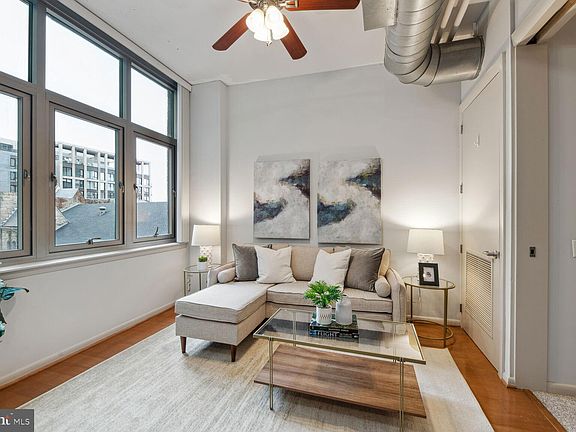 Enjoy this industrial chic one-bedroom residence situated within the beautiful Madrigal Lofts building! The unit offers the perfect living space for anyone looking to live in the heart of downtown DC. The open and airy floor plan, accentuated by ceilings soaring 9 feet, showcases exposed ductwork and gleaming hardwood floors throughout the main living area. The kitchen is adorned with beautiful Carra Morro white quartz counters, a gas range, and a brand-new backsplash added in 2024! GORGEOUS NEW 2024 BATHROOM REMODEL- stunning updated counter space, light fixtures, tiling, and flooring throughout. The convenience of an in-unit washer and dryer adds to the modern living experience. The unit also has a new water heater system! This prime location ensures unparalleled accessibility, with a plethora of restaurants, metro stations, and stores just minutes away- It does not get more convenient than this. Madrigal Lofts also features a fitness center and a beautiful roof deck for you to enjoy. The roof deck features grills and a stunning view for your entertaining & relaxation needs. Garage parking is currently available for rent in the building and pricing estimates around $175/month, although it is case by case. Zoned street parking is available next to the building. HOA also includes internet - an amazing value! Immerse yourself in city living and the wonders of DC by calling this unit home! ***The seller agrees to pay up to $5,000 towards either closing costs, HOA fees for a year, and/or a parking spot or storage***