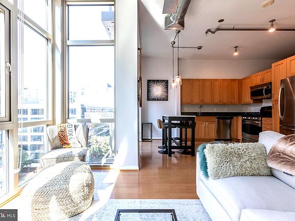 BIG PRICE IMPROVEMENT. Sunlight streams through floor-to-ceiling windows in this stunning loft style 1 BR condo at Madrigal Lofts, a professionally managed condo building in Mount Vernon Triangle. The building features a phenomenal roof deck, 24 hour concierge and a well-equipped fitness room. Relax high above the city streets but easily traverse to as many of the nearby restaurants, museums and entertainment venues as you like. Freshly painted, you'll find all the modern amenities like beautiful wood cabinets, granite countertops, stainless steel appliances and wood floors. Valuable recent updates include custom floor to ceiling blinds, stacked in-unit front-loading washer and dryer, and bedroom carpet. A Juliette balcony lets you feel the breeze! The building also provides outstanding value with secure garage parking and utilities (except electricity) Importantly, pets are welcomed as are investors! Building is approved for VA loans. It is just a few blocks from Capital One Arena and Gallery Place/Chinatown & Judiciary Square Metros. Furthermore, it is located a block from the ramp for I-395, 2 blocks from NY Avenue and just 4 blocks from Union Station (trains and Metro). Essentially, you can get anywhere you need to be in short order. Convenience, style and location all come together for you!
