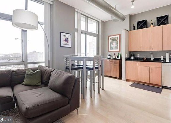 Brilliant, bright & airy loftominium at Madrigal Lofts. Home has an industrial feel w/large windows, gourmet kitchen embellished with GE stainless steel appliance suite, Maple hardwood floors, custom paint color, smart home features w/high efficiency LED lighting, home networking hub w/ mobile programming, oversized granite vanity, 1 parking space. Ideal location. Madrigal Lofts is a modern loft style building featuring a 24 hour desk, fitness center and rooftop featuring 4 grills and amazing views! Only a few blocks from Metro, Verizon Center, Chinatown, Judiciary Square, restaurants and shops, and EZ 395 hwy access. No smoking. No pets. Water included. FiOS internet included until October 2023. Renter pays electric and optional cable television. The unit includes the following appliances: Gas stove, dishwasher, refrigerator/freezer, washer and dryer, microwave oven. Garage Parking space included. Minimum one year lease.