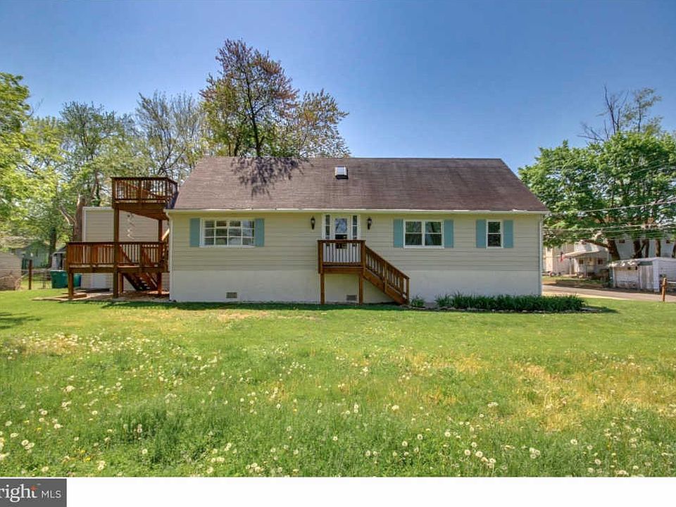 Like living at the beach but in Bucks County! This beautiful cape home has been upgraded top to bottom with new neutral paint, new flooring, new kitchen, updated bathrooms and a new hot water heater. Located on a quiet dead end street with partial views of the marina and Neshaminy Creek. The first floor features an updated kitchen with wood cabinets, granite countertops and stainless appliances. Laundry closet is located off of the kitchen, with washer, dryer and a recently replaced hot water heater (2015). There is a dining room with sliding door access to the deck. An open living room and three bedrooms and full bath complete the first floor. 5 1'4" Natural Maple Flooring throughout the main areas and newly upgraded carpet in the bedrooms. Upstairs leads you to two additional bedrooms, full bath with skylight and family room with wet bar, microwave and mini fridge (this room could be converted into a full kitchen should you decide to use this level as an in law suite or convert back to a duplex). One of the bedrooms has exterior access to the top level of the two tiered deck and private entrance. Underneath the home you will find a crawlspace with tiled ceiling and plenty of room for storage. Additionally there is an oversized two story garage with remote control entrance and loft access for office space. Parking for 6 cars. The home faces private township owned land for additional space and privacy. Located across from the Neshaminy Creek, near the marina for your boating and water access. Close to major roadways! Don't miss this one ? the possibilities are endless.