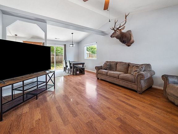 Welcome to 811 Arthur Avenue! Discover this charming, move-in-ready, single-level home featuring 3 bedrooms and 2 full bathrooms, nestled in a quiet, well-maintained neighborhood. Conveniently located just minutes from local schools and parks, and less than 20 minutes from Eugene, this property offers the perfect blend of tranquility and accessibility. As you approach, you’ll be welcomed by a spacious, covered front porch ideal for relaxing or enjoying your morning coffee. Step inside to find an inviting open-concept living room and kitchen, complete with vaulted ceilings, hardwood floors, and an abundance of natural light. The generous kitchen is equipped with modern appliances, a large pantry, and plenty of counter space, making it a chef’s dream. A dedicated laundry room is conveniently located down the hall, along with ample built-in storage throughout the home. The updated guest bathroom serves two well-sized guest bedrooms, providing comfort and privacy. Retreat to the owner’s suite, which features a walk-in closet and a private ensuite full bathroom, offering a serene space to unwind. Outside, enjoy the expansive, fully fenced backyard, complete with a large tool shed perfect for gardening or extra storage. Shown by appointment only. Contact your broker today to schedule a private tour of this delightful home!