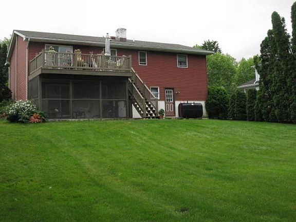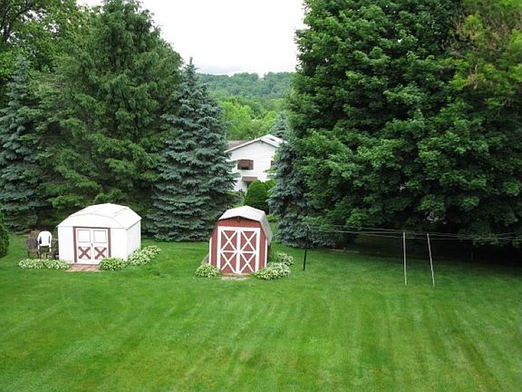 Spacious brick front home w/huge fam rm, brick flr to ceiling stone FP, C/A, newer furnace, composite deck, screened porch, den could be used as 4th br, 2 sheds, lovely yard bordered w/mature trees