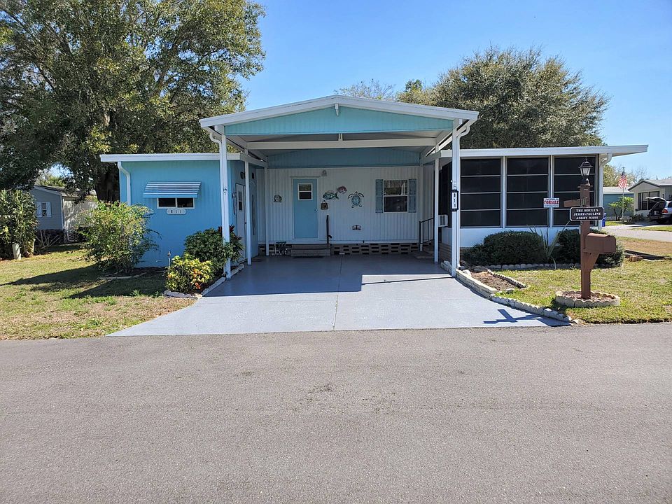 Looking for a great little home away from home in Sunny Fl. In a great, clean, active, fun 55+ community. Be sure to look at this home located in the popular Hidden Golf Club and is part of the combined CRF communities. Hidden Golf and Swiss Golf & Tennis is where you can enjoy an active community on the beautiful 1,000 acre Lake Henry with fishing pier and boat dock. This 1 bedroom 1 bath home will surprise you. The home is move in ready with updated flooring, New Air Conditioning in 2019, painted inside and out with a large driveway (33 x 18), and sits on the corner of a nice quiet street. With the open concept in this home, you don't feel like the home is only 500 sq. ft. As you will see when you look at all the pictures and the video. You even have a nice sized Florida room right off the living room (12.7 x 10.9) for even extra space and comfort. The laundry is in the utility shed (12 x 9) under the large carport. Don't miss out on this great little home without taking a good look. Homes are selling so quickly simply because this is one of the best communities around with tons of activities, great people, and countless things to participate in. Don't miss out. Call today for more details and be sure to watch the video. Hidden Golf and Swiss Golf & Tennis are very active communities. There are 2 clubhouses, 2 pools, an onsite restaurant and pub, exercise room, card room, billiard room, library, pro shop for the 18 hole executive golf course, shuffleboard, pickle ball, bocce ball and the list goes on. There is a strong entertainment committee which provides local monthly shows, dances, dinners, cards, white elephant sales, golf cart parades and bingo. You can be as active as you like or just chill out by the pool overlooking a beautiful lake. Winter Haven, FL, is centrally located between both the Gulf and the East Coast beaches. The Orlando Airport is only 45 minutes away and so are many sports events, such as the Lakeland training camp. Disney World and Universal Studios are close enough to enjoy any time you feel like going. There is a never ending array of outlet malls for shopping, dining and relaxing! So, whatever you like to do for entertainment, Central Florida is the place to live. Property address is 811 Birdie Ct., Winter Haven, FL 33881. Current lot rent is $466.16